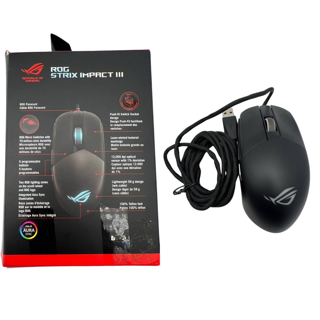 Item includes: x1 ROG Strix Impact III Wired Gaming Mouse -Device Only- As pictured- Other accessories are NOT included.