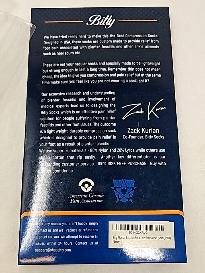 Pink Bitly Plantar Fasciitis Socks Premium Ankle Compression Support Foot Small